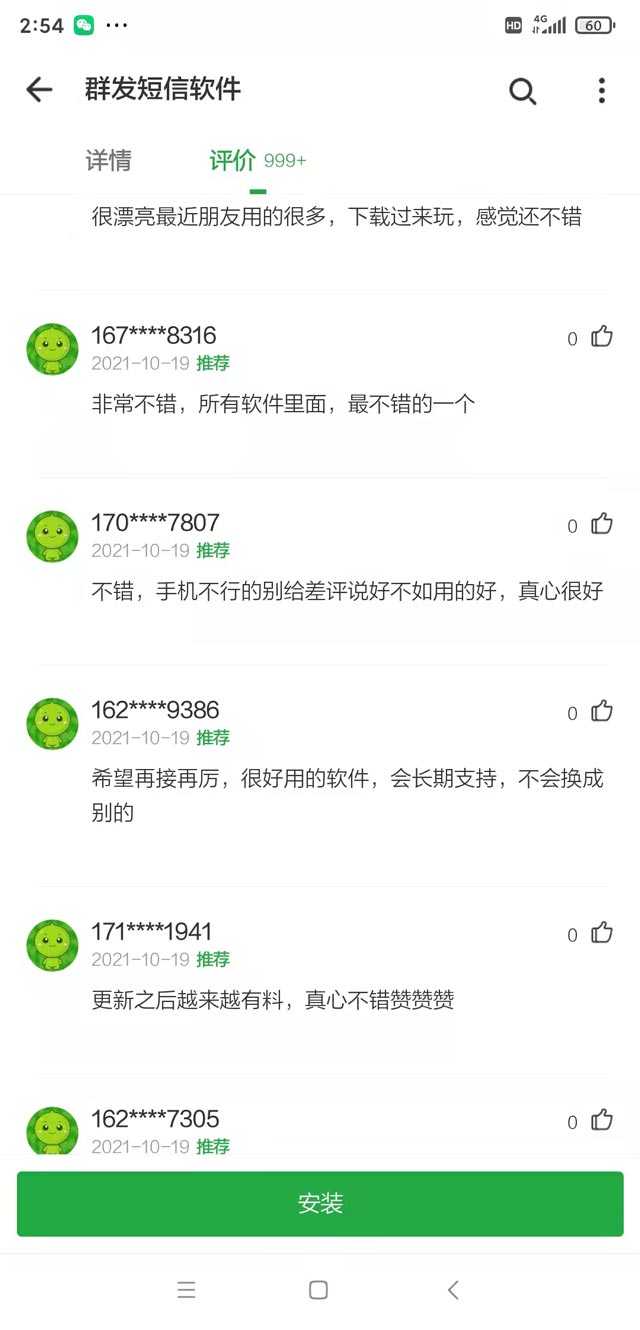 價格便宜,500條短信36元,一杯奶茶錢而已!APP在安卓、蘋果應用商店都能下載,換手機也可以用。安quan問題也不用擔心,紅楓葉傳媒是獲工信部頒發(fā)SP證的單位,注冊資金1000萬,資質(zhì)齊全,做了十多年了,放心使用!