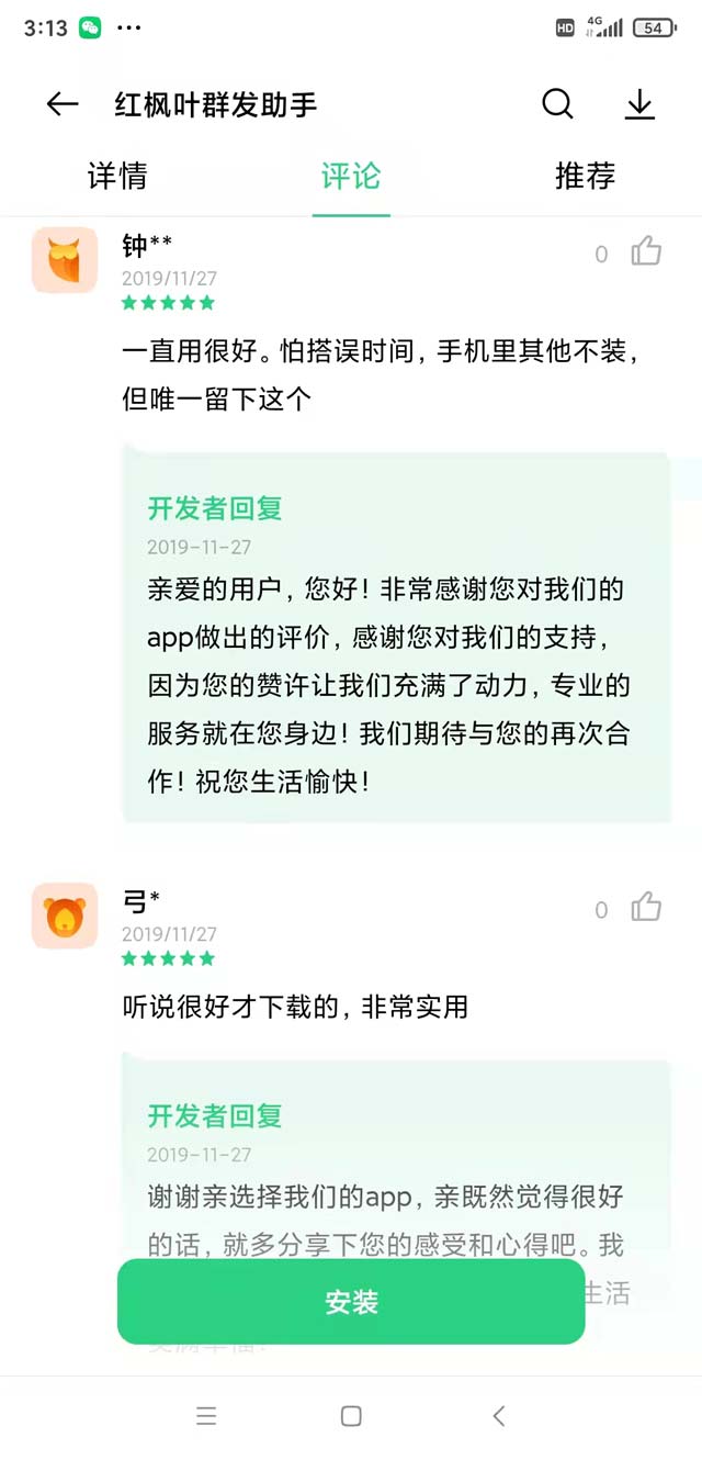 這款軟件大大地減少了我的工作量。不用上傳通訊錄,就能一鍵給陌生號(hào)碼群發(fā)短信,還能對(duì)用戶進(jìn)行分組,用起來真的炒雞方便!有106碼號(hào)證SP證,還是國(guó)家高新技術(shù)企業(yè),資質(zhì)方面你也可以放心。